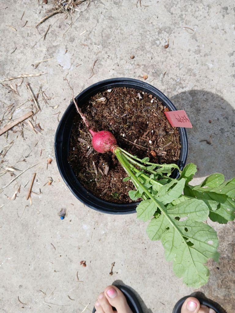 I planted quite a few radishes but the deer only left us 1 to split between the bunnies. . .proud to report they loved it so I had to cheat and go to the store for more to spoil the girls a bit.