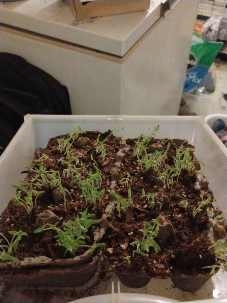 not to mention these 1000s of seeds are stuffed into egg cartons and small pots probably about 20 ish in each little egg slot as well as 50 to 100 in each of the bigger pots since I was not prepared for this . . .