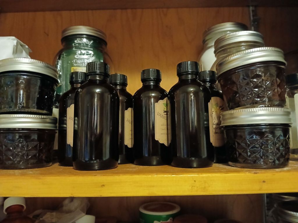 More vanilla is brewing in the original vodka bottle and I am out of any extra to make more or fill my now half empty bottles so a trip to the liquor store is needed.