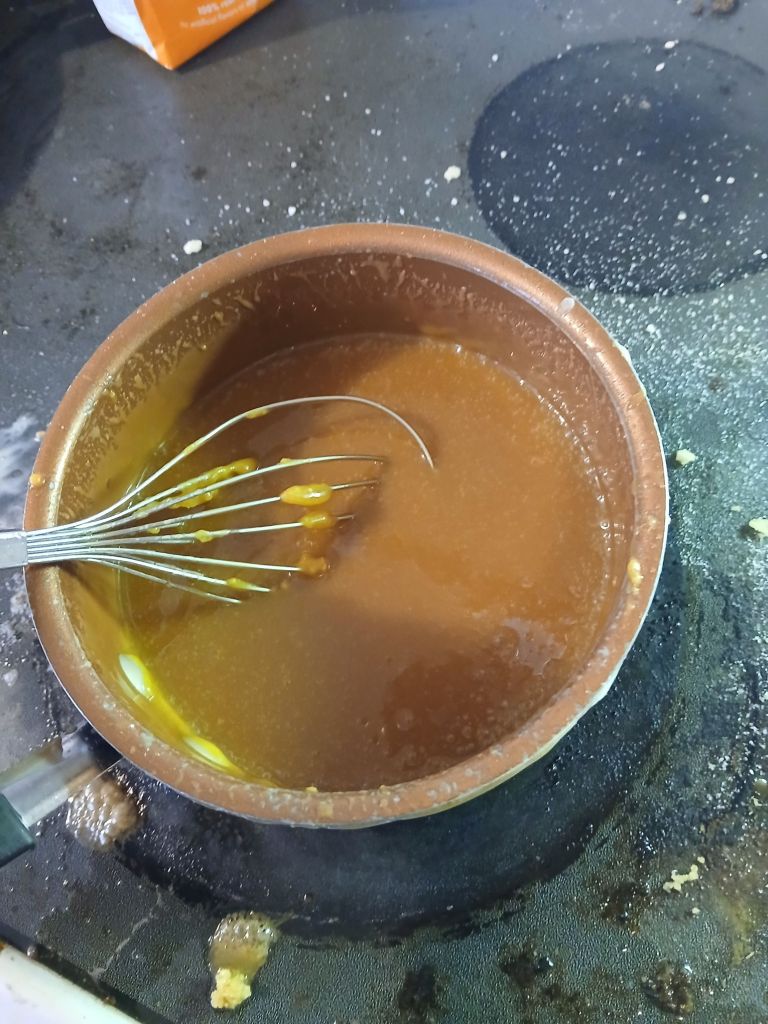 This “Fun” adventure turned to chaos when I added the butter to the melty sugar. So you are aware, sugar is the easiest brainless thing to cook on the stove, It’s the same as “hurry up and wait” for those results. Once i added the apparently not warm enough butter to the very very hot melted . . 3 cups of sugar. . It took forever to melt just so you know. The kids got a new vocabulary lesson on what you should not say . . and i got a hand swat for bad language.