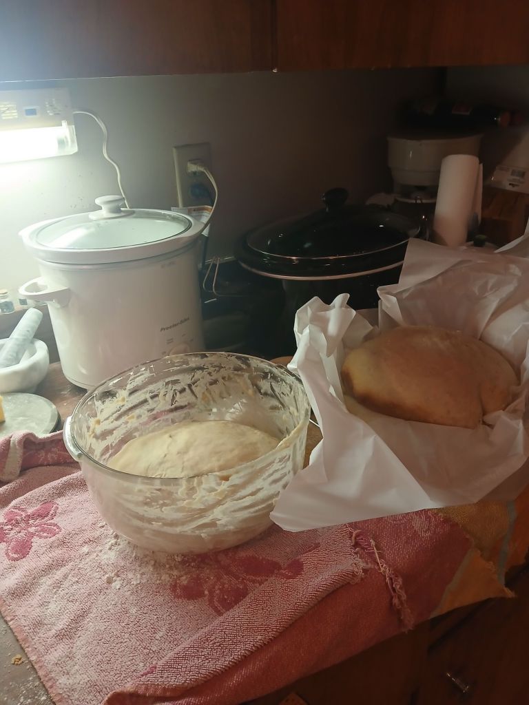 I love and hate when I get lucky and find a good one that actually tastes really good, and, and, and the kids absolutely love it. The Crock pot helps to keep the oven open for whatever else we want to make to go with the bread and bonus Its pushed far enough back on the counter that the kids are not quite tall enough to reach it yet.